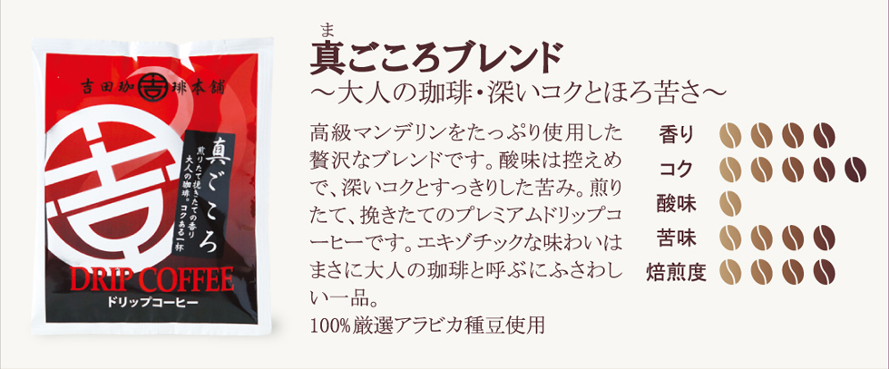 お試しにちょうどいいセット 店長おすすめのおいしいこだわりの4種類です。 味と香りにこだわった当店自慢のコーヒーをぜひ一度お試しください! 製造直売だから楽しめる、袋を開けた時のすばらしい香り 品質と鮮度にこだわったドリップコーヒーの詰め合わせです。