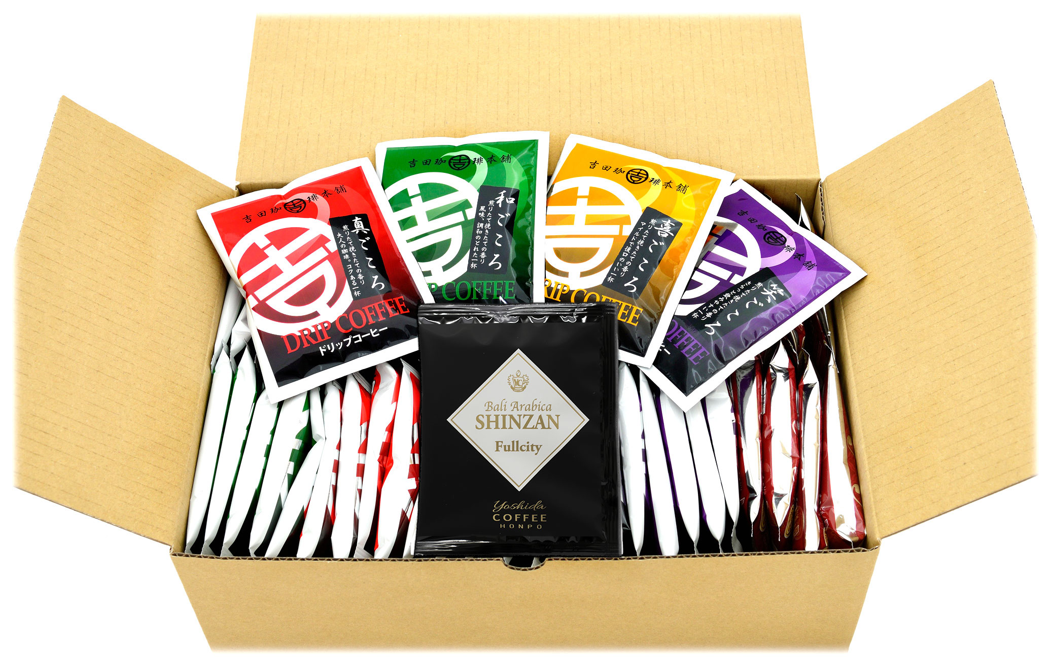 品質と鮮度にこだわったドリップコーヒー4種類の詰め合わせに、 バリ・アラビカ神山フルシティ(中深煎り)のスペシャルティなドリップコーヒーが入ったよくばりなセット。 他の商品や同じ商品の複数まとめ買いにお得です!